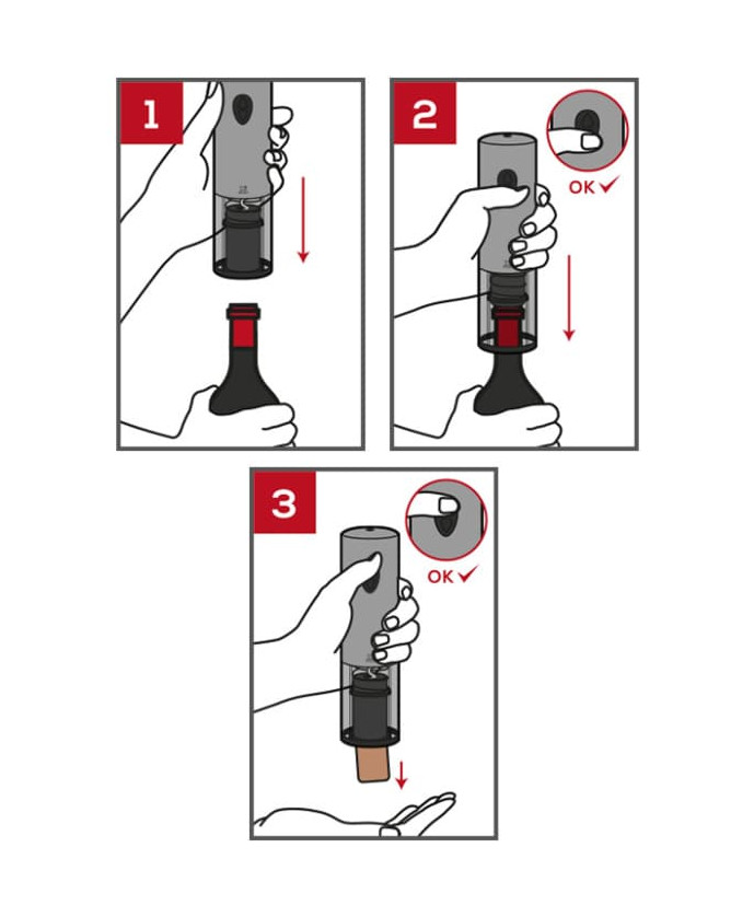 Opening your favourite bottles of wine has never been so easy. Simply push the Elis Touch corkscrew down over the neck of the bottle to start...