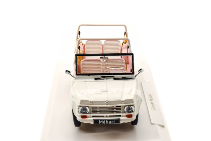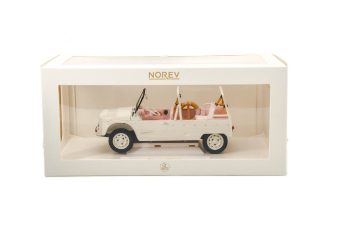 1/18 MEHARI EDEN SORBET PINK AND WHITE The Citroën Méhari Sorbet electric is now available as a 1:18 Norev miniature, featuring a new electric motor and under-chassis battery. Its pink interior and woven-style seats matched with the white body charm with their originality. Eye-catching like strawberry ice cream, this Méhari blends authenticity, creativity and elegance, offering a refreshing delight and a true treat for collectors. BRAND : NOREV
