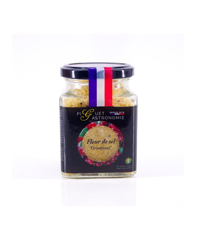 The Fougerolles cherry trees lulled by the wind produce an inimitableliqueur thanks to the slightly sour, ruby-colored Morello cherries. Whenthis exceptional product from Haute-Saône is absorbed by spring salt,the latter takes on a powdery pink color and develops a subtle tangytaste. The "GRIOTTINES" fleur de sel poured on a duck breast, on yourmeats or on your accompaniments will bring a fruity and floral touch.Salt from the Saline of Salins-les-Bains (Jura), made in Franche-Comtéby Piguet Gastronomie.To be used with a special grinder for wet salt.