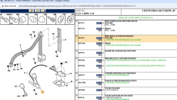 - Front and rear seats - Slide rail - Headdress - Seat belts