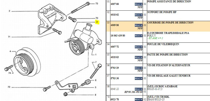 - Steering - Assistance pump - Belt - Rack - Pipe