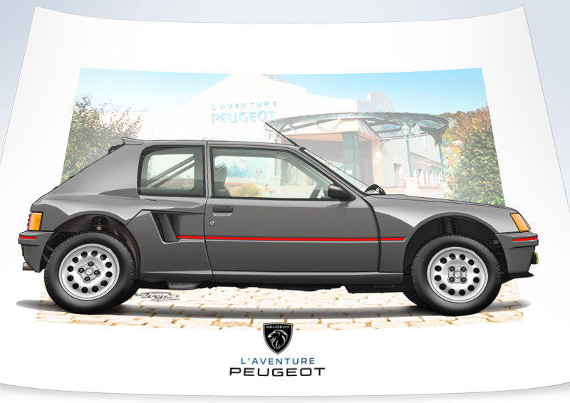 Poster dessin, exclusivité Musée de l'Aventure Peugeot en partenariat avec Cars by Trap. Format 50 X 70 cm. Nombreux modèles et coloris disponibles. Existe en format carte postale et autocollant.