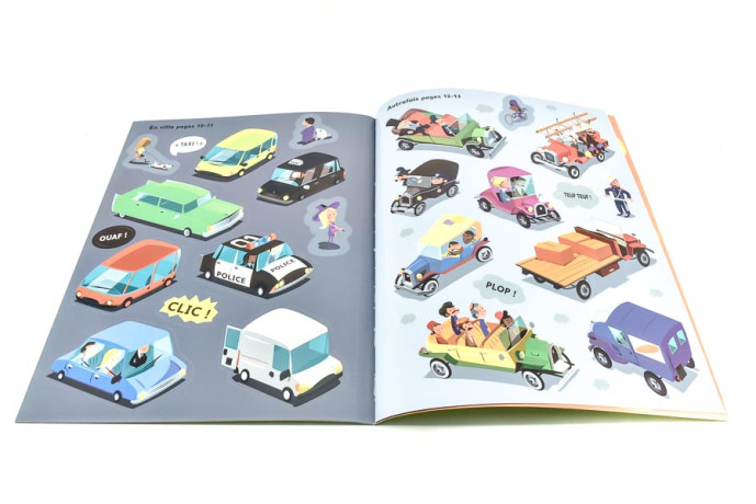 Livres avec plus de 100 autocollants sur l'automobile, pour animer les scènes imagées. Des dizaines de voitures différentes animent les pages de ce livre original. Les jeunes enfants auront plaisir à compléter les scènes imagées en plaçant les véhicules au fil des pages. Avec plus de 100 autocollants très colorés, ils pourront entre autres compléter une course automobile , une ville très animée, une autoroute, un garage... 16 pages + 8 pages d'autocollants Dimensions : 21,6 X 27,6 cm, broché. Editions Usborne Auteur : Simon Tudhope Illustrateur : Sébastien Telleschi
