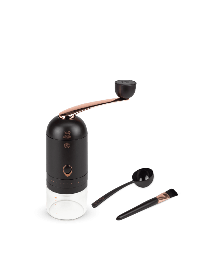 Avec ce moulin à café Peugeot, l’amateur de bon café peut réaliser la mouture parfaite quelle que soit sa méthode d’extraction. Qu’il apprécie l’espresso, le filtre, le piston, ou le cold brew, il peut sélectionner la mouture adéquate d’un simple geste. Son réglage de mouture u’Select, facilement accessible, la qualité extrême de son mécanisme en acier et le design de la manivelle font de ce moulin à café manuel un objet aussi séduisant que performant. Les connaisseurs le savent, le café est un univers marqué par la diversité des origines, des torréfactions et des préparations. La fraîcheur de la mouture est l’un des facteurs clefs de la qualité. Moudre son café de façon instantanée permet de préserver toute l’intensité et ses arômes. Le moulin L’Arbre à Café donne à chacun la possibilité de moudre son café, au dernier moment, juste avant de le préparer. Le développement de ce moulin est le fruit de la rencontre de trois passionnés, experts et exigeants : Peugeot, Sylvie Amar Studio pour le design et Hippolyte Courty, torréfacteur et fondateur de L’Arbre à Café. Un trio gagnant pour un moulin innovant, précis et accessible. SES POINTS FORTS: • une mouture répétable et homogène • un réglage facile et sécurisé • une utilisation simple, facile et rapide • des réglages adaptés à toutes les préparations de l’espresso à l’infusion à froid • un réservoir accueillant jusqu’à 35g de café, soit la quantité pour préparer 0,5 litres • un réceptacle en verre, gradué et lavable • équipé d’un pinceau et d’une cuillère doseuse
