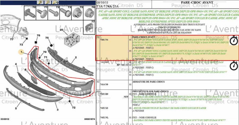 - 74 - Pare-chocs avant et arrière - Insonorisation - Garniture de coffre et latérale