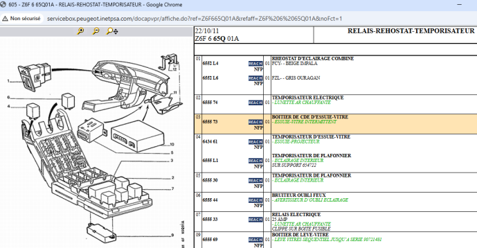 - 65 - Faisceaux - Fusibles - Interrupteurs - Relais - Agrafes - Antenne - Obturateurs