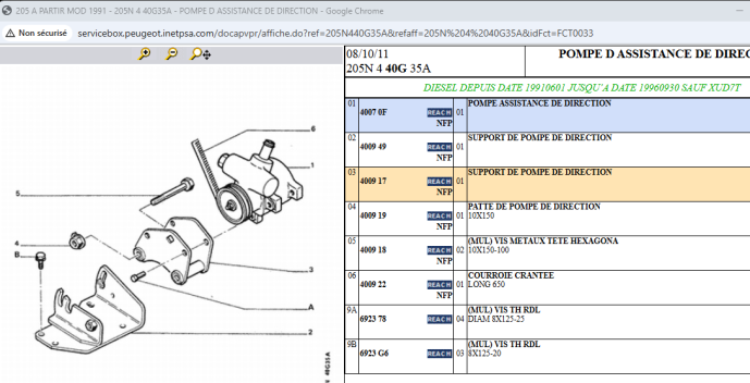 - 40 - Direction - Pompe d'assistance - Courroie - Crémaillère - Canalisation