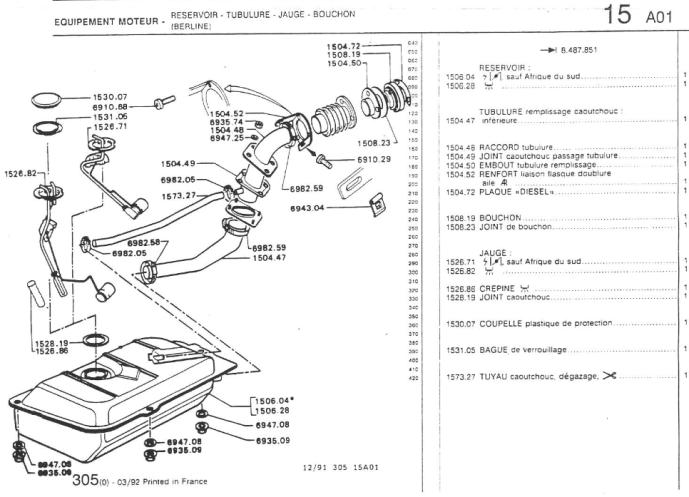 - 15 - Réservoir - Canalisation - Raccord - Filtre à carburant