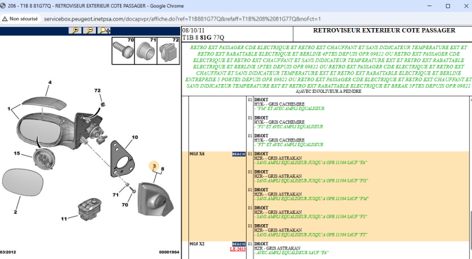 206 ENJOLIVEUR GOUSSET RETROVISEUR DROIT HZR- - GRIS ASTRAKAN