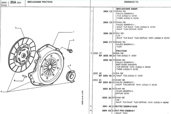 DISQUE D'EMBRAYAGE - Diamètre 180 luk -essence TU- sauf TUS sauf TU24depuis 10/91 jusqu'a 03/93. Référence: 2055A5.