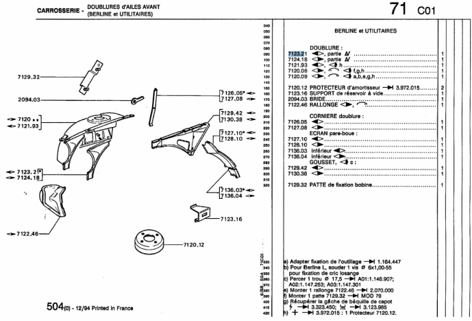 - 71 - Armature Avant - Tablier - Doublure d'aile - Pied d'entrée